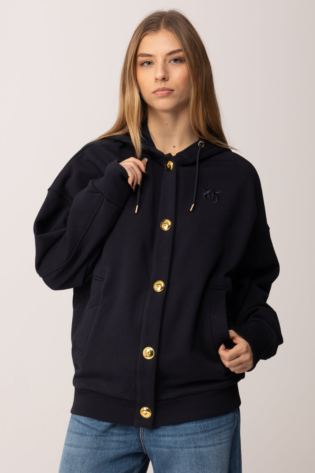 Il cappuccio regolabile con laccetti e le tasche laterali aggiungono praticità, mentre la linea morbida con spalle scese valorizza il comfort e lo stile rilassato tipico di Pinko. Il logo ricamato sul petto completa il design con un tocco discreto ma distintivo.