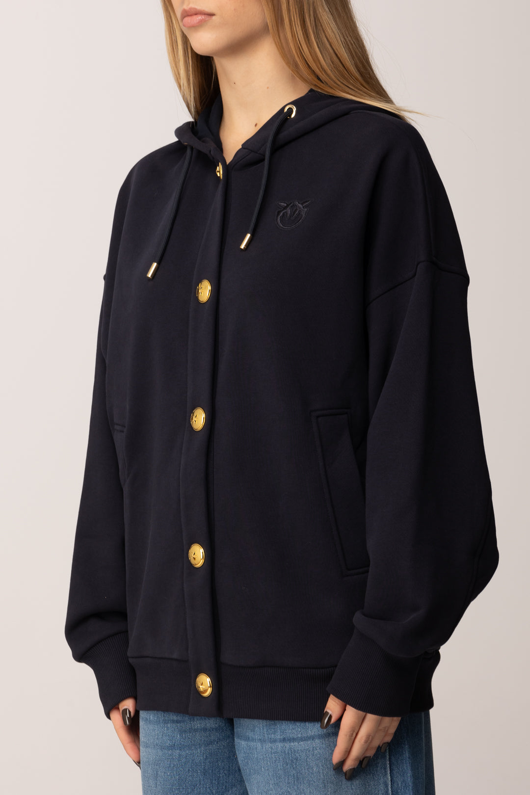 Questa felpa Pinko unisce il comfort del cotone puro all’eleganza inaspettata dei dettagli dorati. Il design con chiusura frontale a bottoni metallici oro dona al capo un fascino sofisticato, rendendolo perfetto non solo per i momenti casual ma anche per look urbani ricercati.