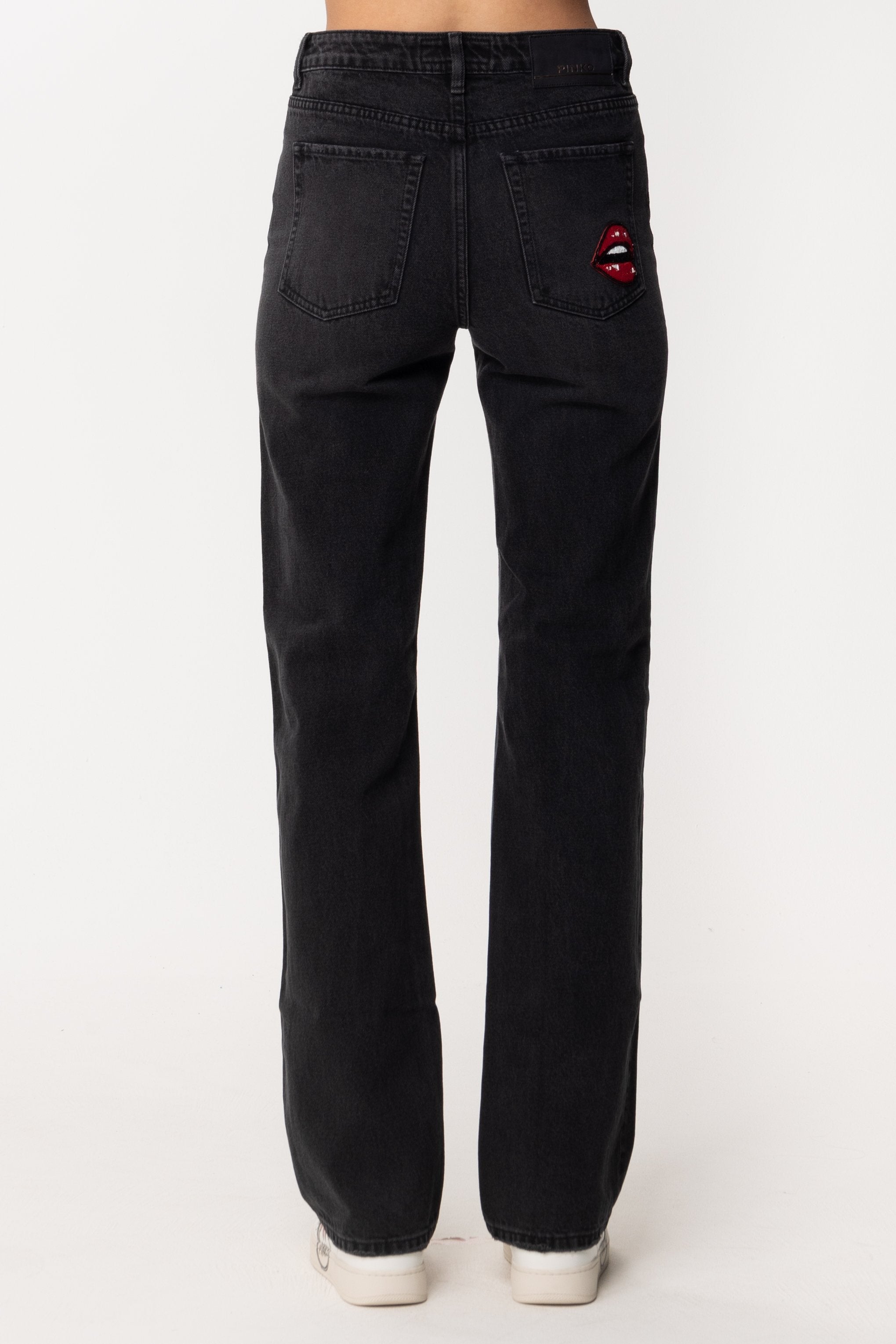 jeans, jeans pinko, abbigliamento pinko, jeans a zampa, jeans svasati, jeans wide leg, jeans ampiModello classico dei jeans leggermente a zampa ma con un tocco super chic e luminoso per donare carattere. Jeans Pinko con una silhouette a vita alta, svasata sul fondo e impreziosita da ricami colorati su fronte e retro. Ideali per chi vuole dare brio e vivacità anche ai look più easy!