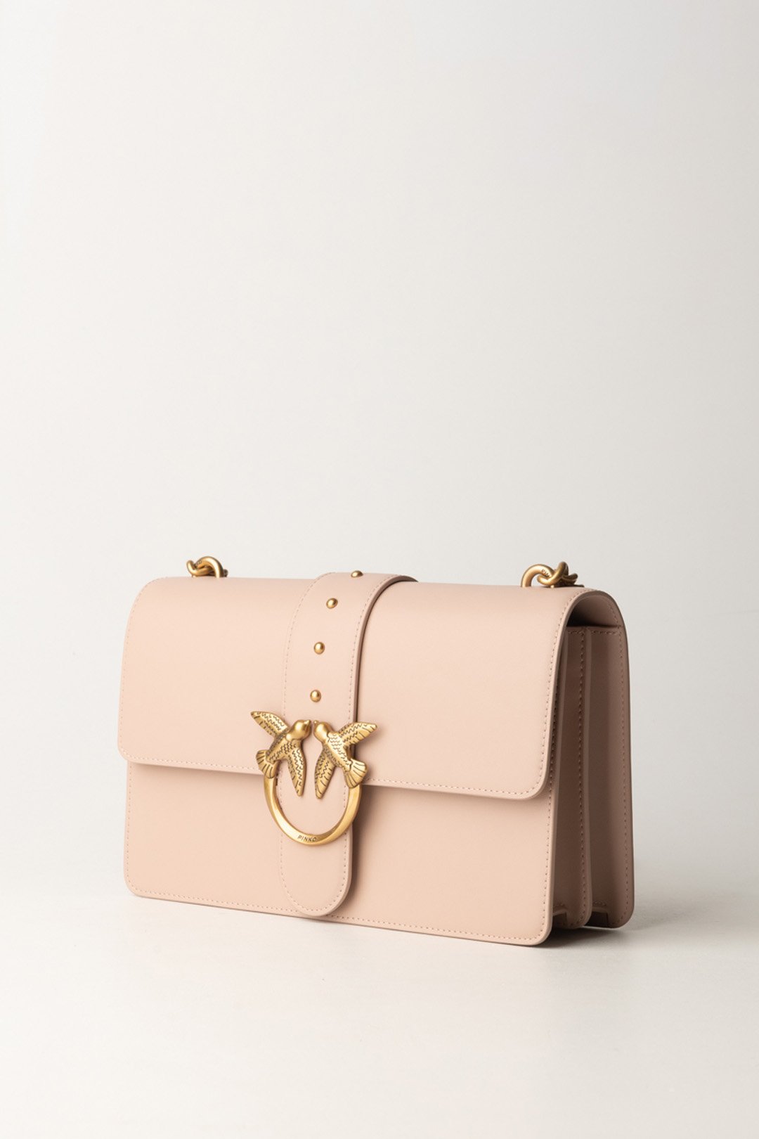 Una borsa Love Bag Pinko la si riconosce a primo impatto! Design squadrato, chiusura con patta impreziosita da cinghia borchiata e logo Love Birds e infine la tracolla a catena con inserto in pelle. Non si ci stanca mai di indossarla!