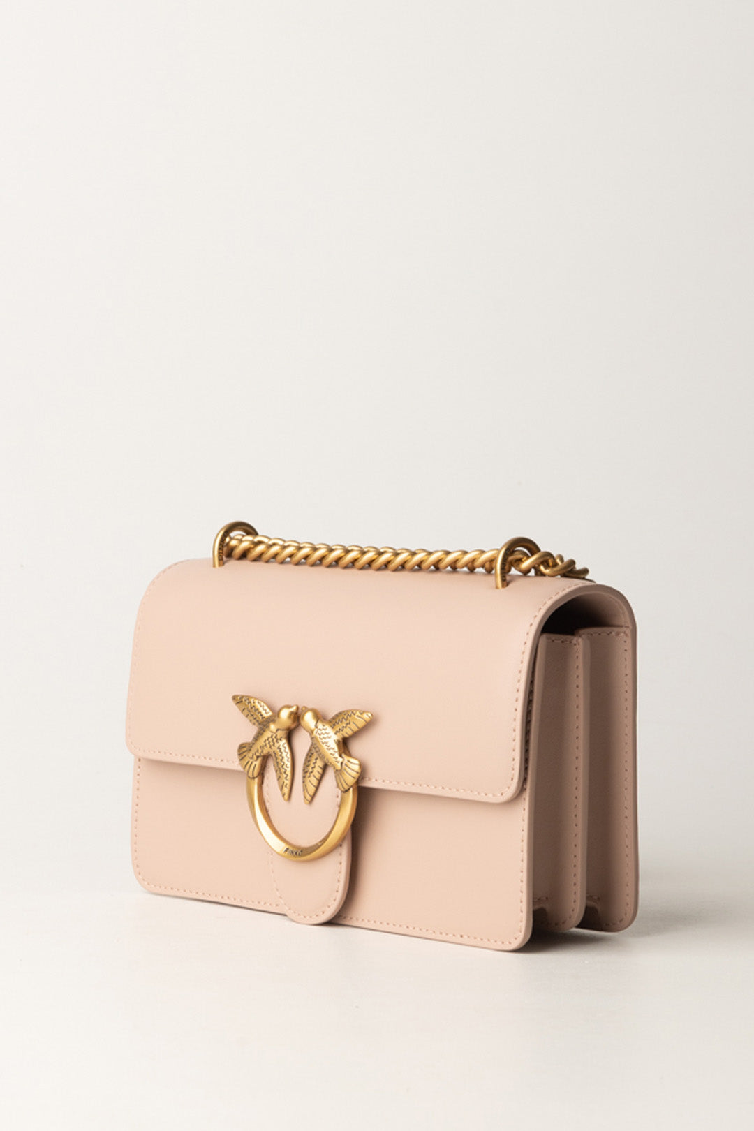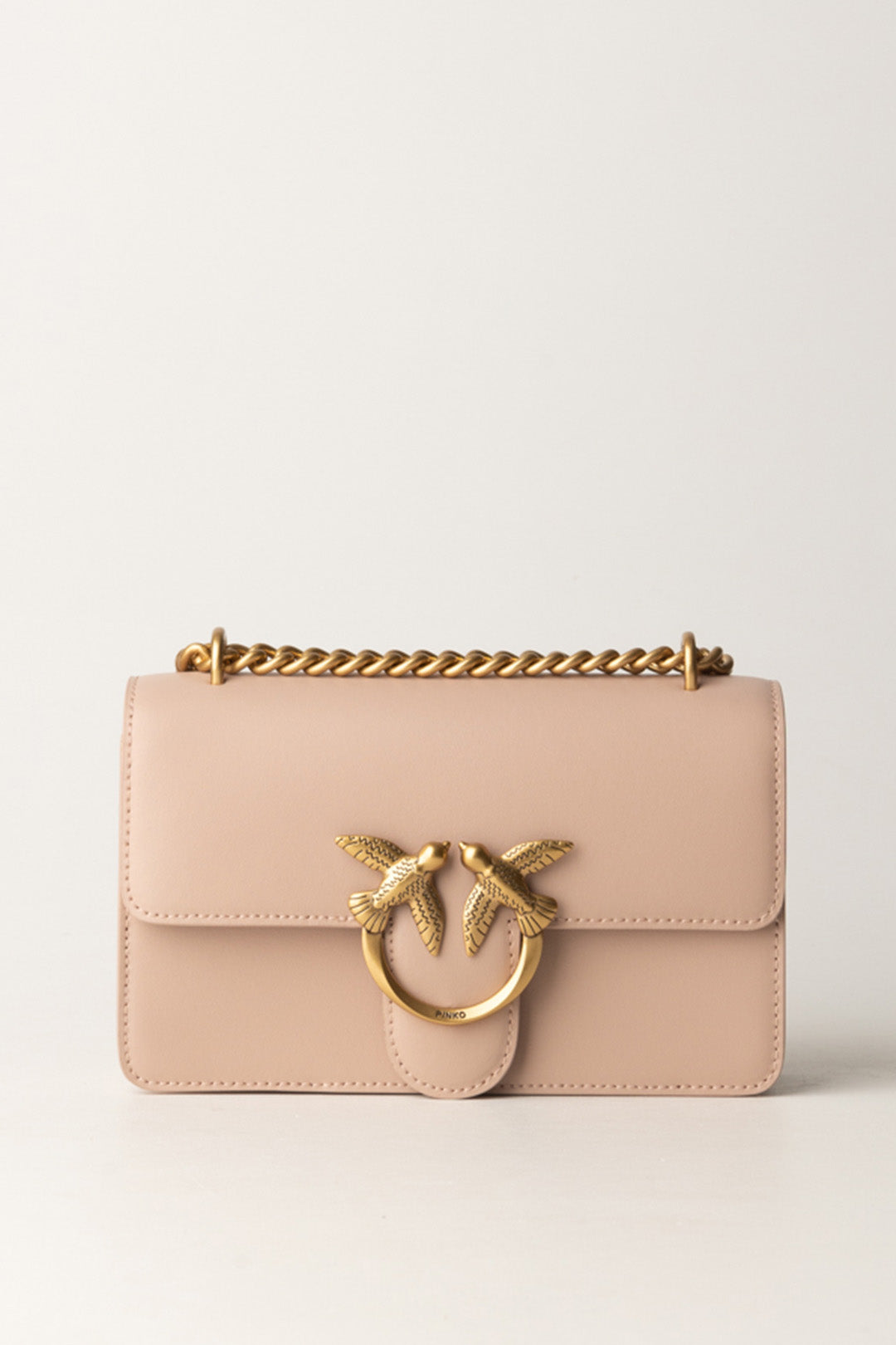 Una borsa Love one Mini Pinko la si riconosce a primo impatto! Design squadrato, chiusura con patta impreziosita da cinghia borchiata e logo Love Birds impreziosito da strass colorati e infine la tracolla a catena con inserto in pelle. Non si ci stanca mai di indossarla!