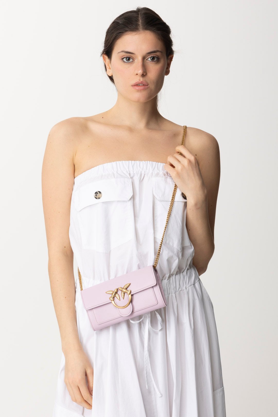 Una accessorio Pinko che non ti stancherai mai di indossare! Piccola, compatta e versatile, una pochette che sarà comoda per gli outfit dove bisogna portare con sé l'essenziale! Ha una chiusura con calamita impreziosita dal classico logo Love Birds e tracolla a catena.