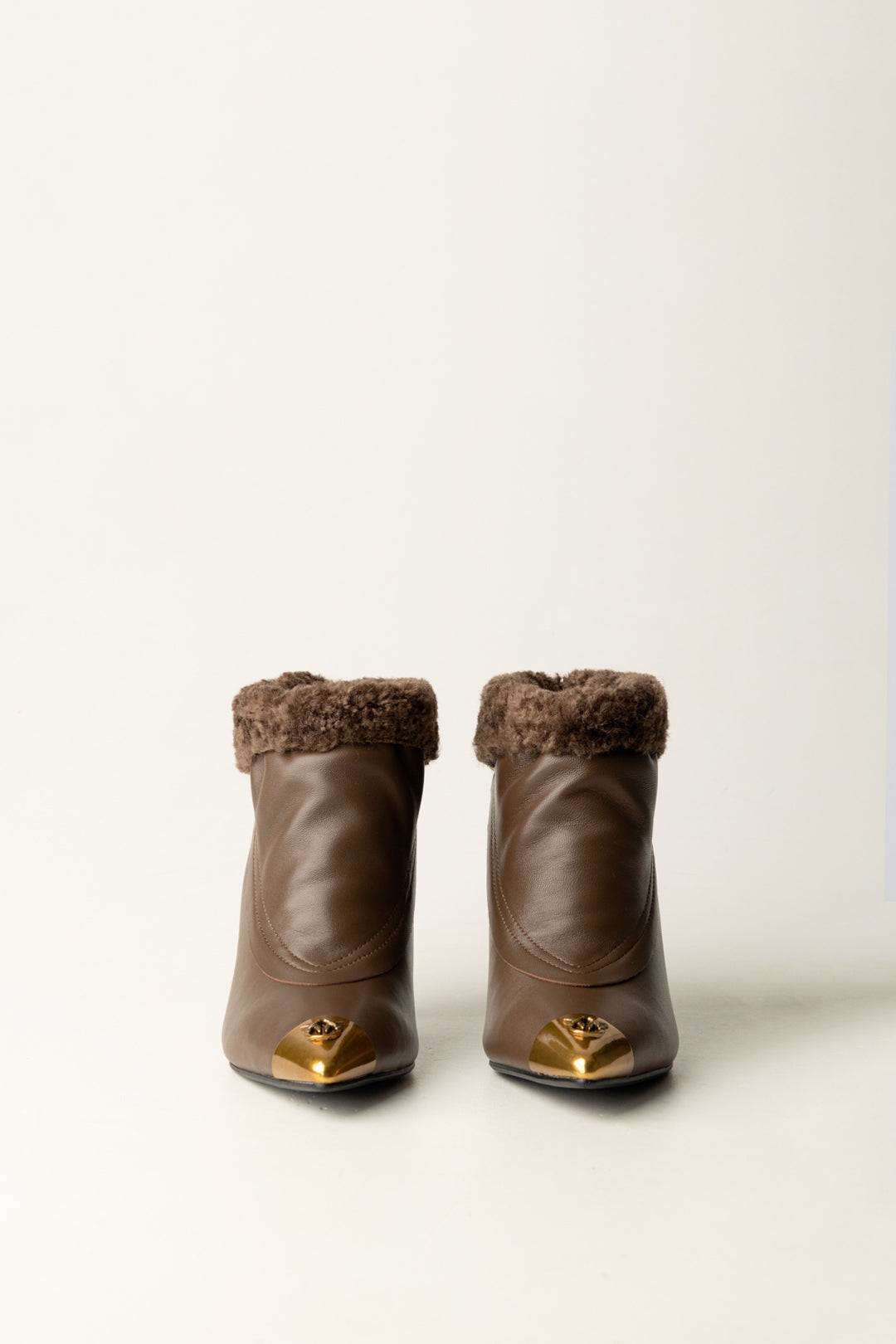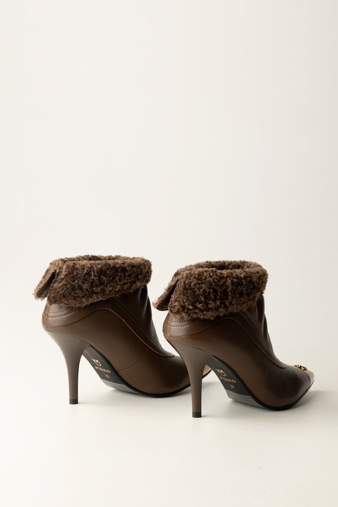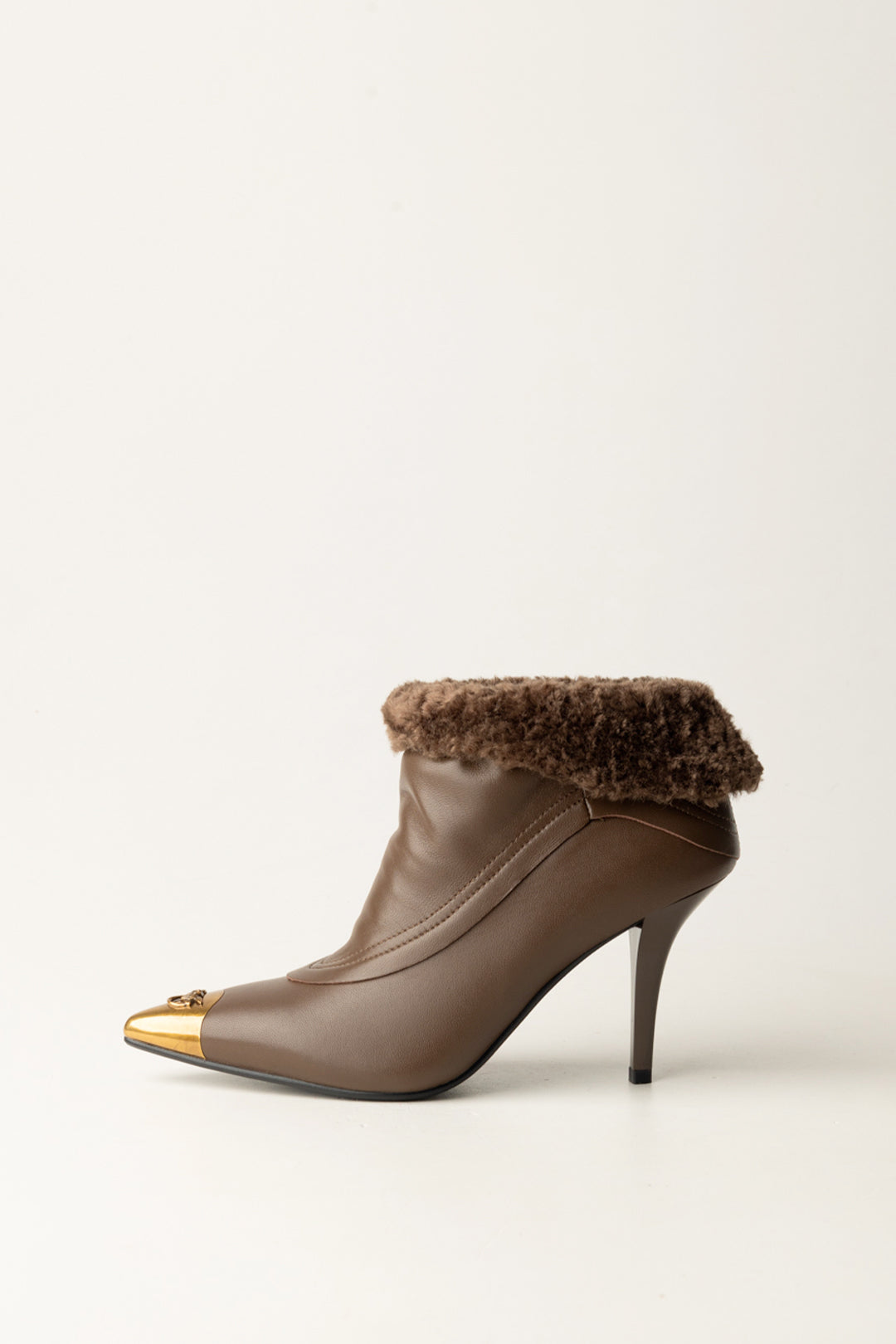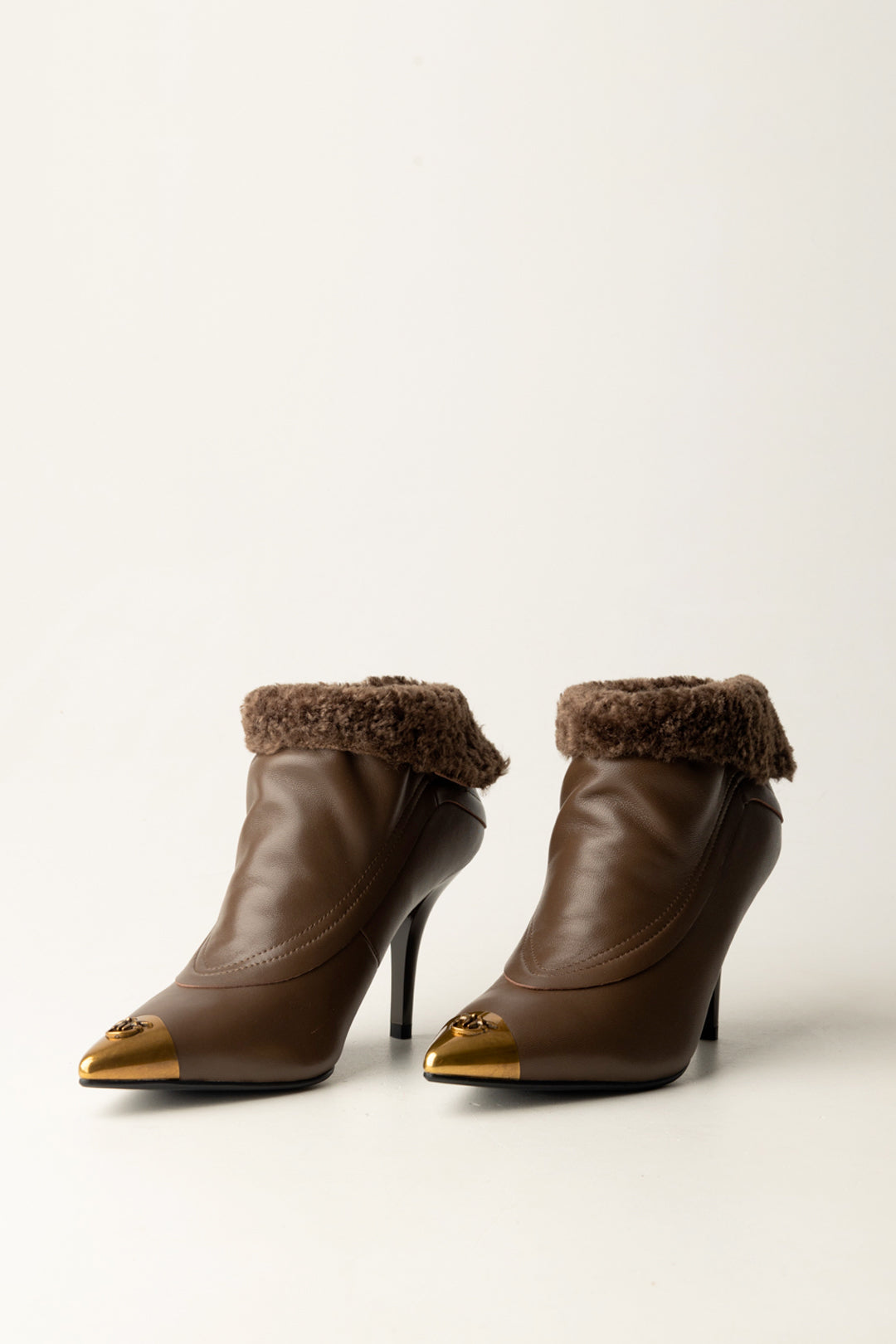 Un tronchetto dalla forte personalità che unisce stile, comfort e dettagli couture. Questo stivale Pinko è pensato per valorizzare ogni passo con eleganza: il design affusolato, la punta in metallo dorato e il tacco sottile da 8 cm lo rendono un accessorio audace, femminile e sofisticato al tempo stesso. Il risvolto in pelliccia sintetica aggiunge un elemento morbido e invernale che contrasta con la linea affilata della silhouette, offrendo un look contemporaneo e chic.Ideale per completare outfit da giorno con pantaloni cropped o jeans skinny, ma perfetto anche in versione serale con gonne midi e cappotti sartoriali. Il logo Pinko applicato sulla punta enfatizza il carattere distintivo del brand, regalando un dettaglio di luce a ogni movimento.Confortevole ma slanciato, questo tronchetto è pensato per chi ama distinguersi con discrezione.