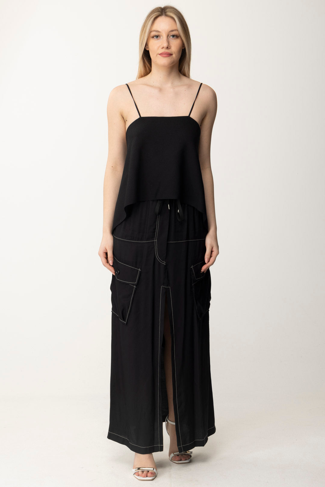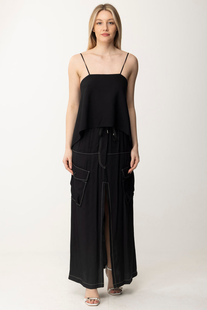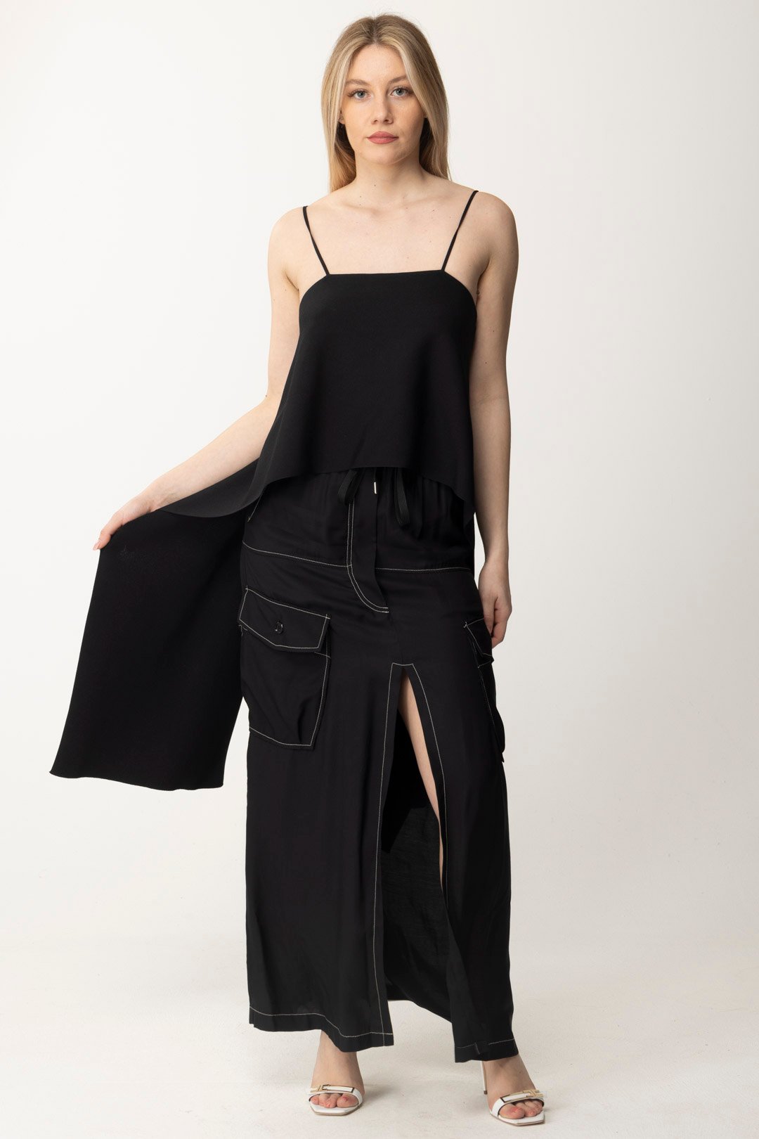 Top Semicouture tra i più belli da indossare per questa stagione: de il fronte si allunga ai lati creando un gioco effetto volant, il retro è lasciato interamente scoperto, eccezion fatta per i due nastrini che ne costituiscono l'allacciatura. Bellissimo con i jeans, bellissimo con qualsiasi altro bottom più elegante per un look femminile quanto imprevedibile.