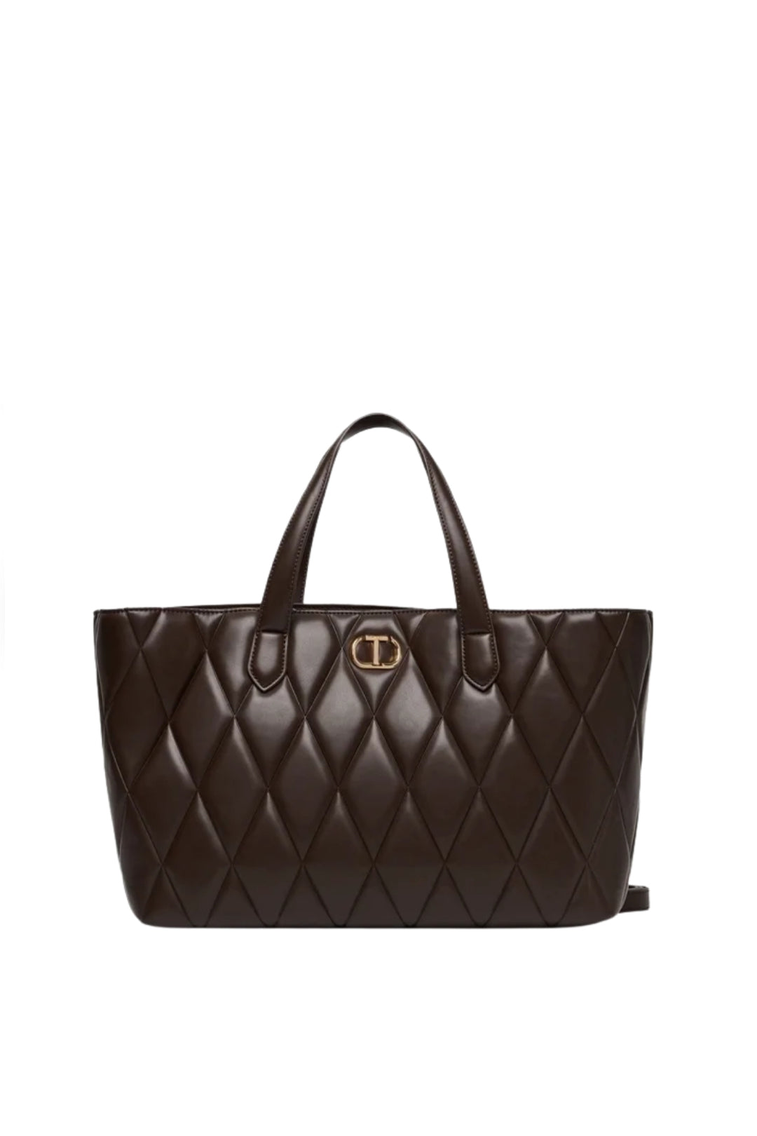 Borsa Twinset dal fascino sofisticato e contemporaneo, perfetta per la donna che cerca un accessorio capiente ma raffinato. Realizzata in morbida ecopelle trapuntata a rombi, presenta un design strutturato e armonioso che unisce eleganza e funzionalità. Il logo ovale metallico con Oval T dona un tocco di luce e riconoscibilità immediata, esprimendo l’essenza distintiva del brand.