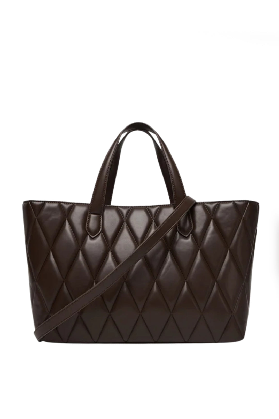 La lavorazione trapuntata dona movimento e carattere alla superficie, rendendo il modello adatto tanto a look casual chic quanto ad outfit più eleganti. Un accessorio pratico, raffinato e dal gusto moderno, che si distingue per la cura dei dettagli e la qualità della lavorazione.