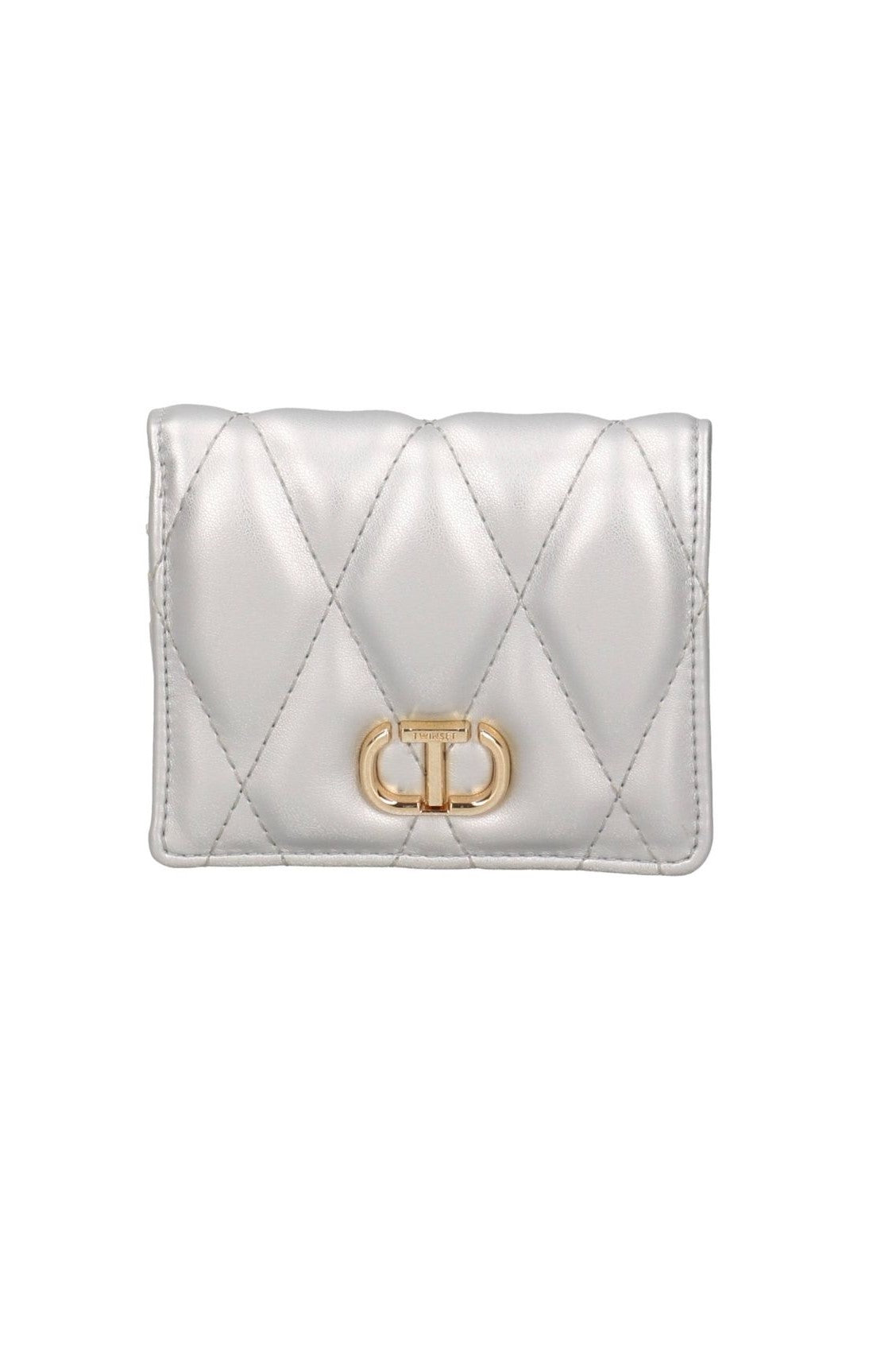 Perfetto per le tue minibag, questo portafogli Twinset ti ripropone lo stile del formato grande in versione mini. Realizzato in ecopelle liscia con finitura trapuntata, lo illumina il logo Oval T applicato in metallo dorato sul fronte.
